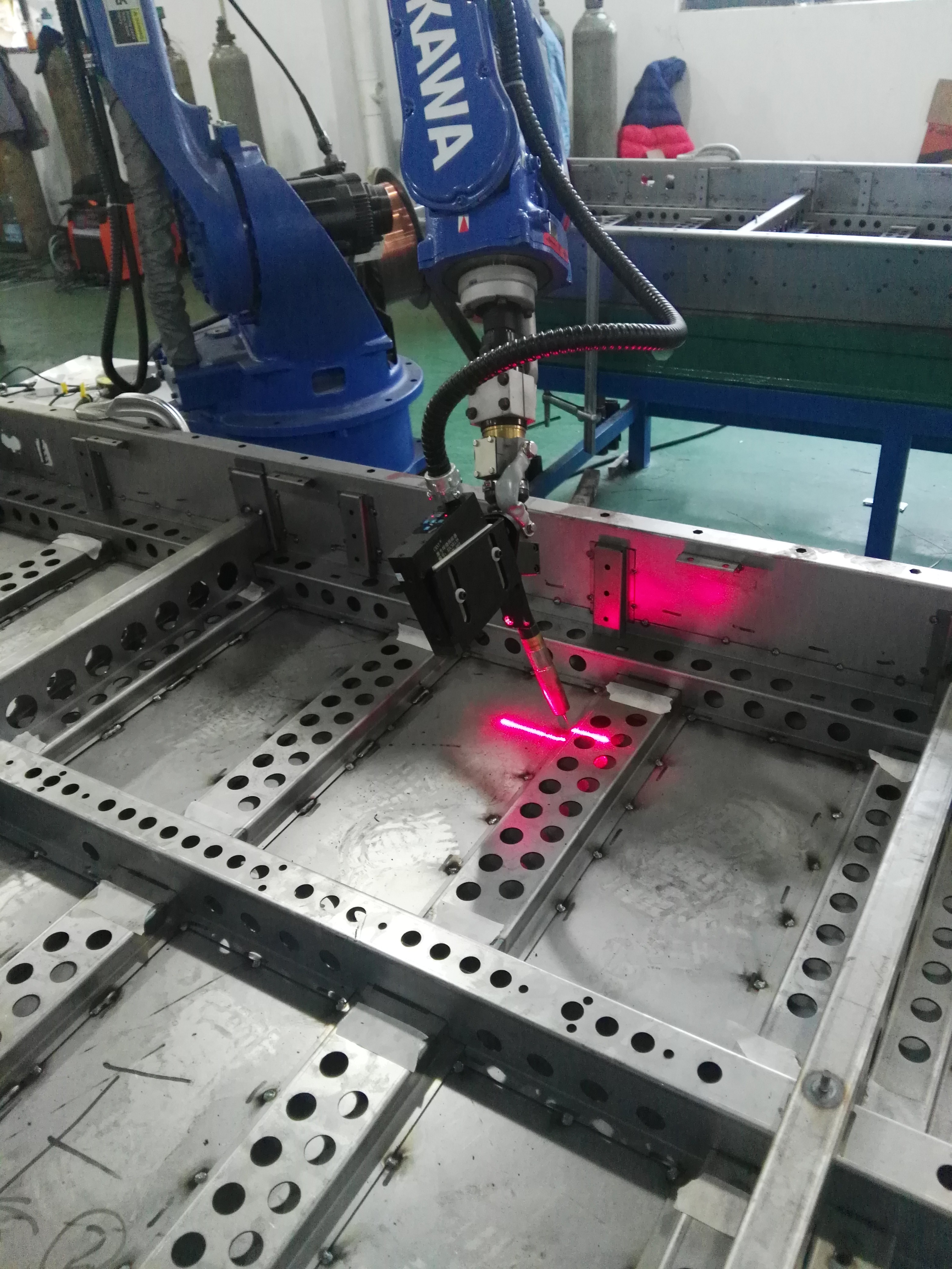 對于檢測范圍,檢測能力以及針對焊接過程中的常見問題都有相應(yīng)的功能設(shè)置。設(shè)備通過計(jì)算檢測到的焊縫與焊槍之間的偏差,輸出偏差數(shù)據(jù),由運(yùn)動執(zhí)行機(jī)構(gòu)實(shí)時糾正偏差,精準(zhǔn)引導(dǎo)焊槍自動焊接,從而實(shí)現(xiàn)對焊接過程中焊縫的智能實(shí)時跟蹤。